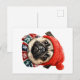 Christmas hat cute pug holiday postcard