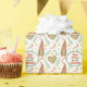 On this cute Holiday wrapping paper is a little girl gnome with long braids and wearing a red and green striped Santa hat. Scattered about in the pattern are hearts and candy canes. Your custom text is in matching green and red on a repeated white oval. A cute way to wish your gift recipient a Merry Christmas!