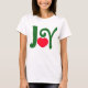Spread the joy and goodwill this Christmas season with this unique typographical ' joy ' tshirt, using a red heart for the letter o between the green letters.