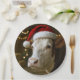 Christmas Hereford Cow Wearing a Santa Hat Paper Plate
