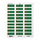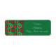 These return address labels have a geometric design of hexagons in four shades of green on a field of stripes in two shades of red.