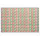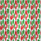 This has a repeating pattern of ovals in red and green with scattered white ovals all on a field of white.