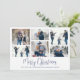 This design features Christmas holiday multi-photo collage 6 six, with snowflake navy blue, simple festive snow winter elegant, family picture 6 photo grid, trendy stylish calligraphy script, whimsical typography text design, Christmas holiday photo greeting cards, simple minimalist minimal layout, blue and white whimsical pattern, basic clean photo layout template