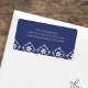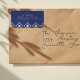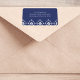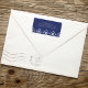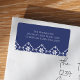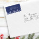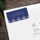 This design features a Christmas holiday winter navy blue return address label with a snowflake snow classic elegant design, a Christmas cute whimsical fun simple, Christmas holiday return address label, a Christmas holiday envelope seal, a custom customized personalized family, with last name address city town, simplistic creative elegance minimalist, with white text font lettering simple, a block style lettering family name