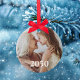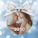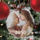 This design features a Christmas holiday snowflake simple photo ornament with a photo family picture template, a colourful winter whimsical cute fun, with a red-pink green colour style, a stylish trendy calligraphy script, a simple minimalist holiday pattern, a simple minimalist minimal classic, with a monogram monogrammed initial name, a lovely Christmas holiday tree decoration, a simplistic whimsy cute holiday Christmas