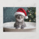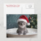 Cute kitten in a bubble bath and Santa hat. A fun message on the back. A cute way to send fun greetings for the Christmas holiday!