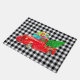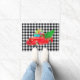 This Christmas holiday doormat is shown with a country style black and white gingham plaid print with a festive red truck art print.