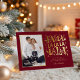 Strike a truly jolly chord with this uniquely festive photo card that sings holiday cheer! The rich burgundy red background serves as the stage for the oversized, playful "FA LA LA" message, which shines brightly in luxurious gold foil. Scattered musical notes and festive icons, also in gold foil, frame your family photo beautifully, making this a fun, vibrant, and unforgettable announcement.