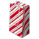 This Christmas holiday gift bag is shown in a red and white holiday candy cane stripes print.