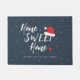 Casual typography home sweet home script with a little red heart and Santa hat making a festive Christmas holidays doormat. +++++++++++ Personalize it with your text! It can be a chic decor for the holidays or a nice keepsake Christmas gift for newlyweds, housewarming, first home, new home, or family anniversary.