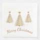 This paper napkin is shown in white with a festive Christmas trees print in gold.