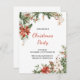 This Christmas Party Invitation features a bouquet of Christmas stars, Christmas tree balls, fir cones, cotton branches and red berries.