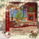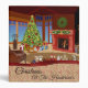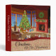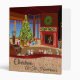 Cozy and warm room at Christmas, complete with fireplace, decorated Christmas tree and gifts from Santa. Personalize this Christmas photo album binder with your family name.