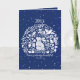 Celebrate Christmas or other winter holidays with an elegantly decorated dark blue and white card, customized with the year of your choice. The featured design is one of my intricate woodland scenes with a rabbit, birds and stylized leaves and floral motifs inspired by antique Delft, Dedham and chinoiserie pottery. Snowflakes lightly dust the entire design, and underneath is a timely quote by poet Walt Whitman, "Peace is always beautiful." The artwork, date and poem together suggest a snow globe or round holiday ornament. Inside, pure white and a dark blue border frame the sentiment, "Wishing you Peace and Happiness for the Holidays and throughout the New Year." Perfect for any rabbit, animal or nature lover. Whimsical, unique, original artwork & design by Tuzi Williams.