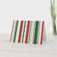 Modern custom holiday cards feature a Christmas pattern of red, mint green, dark green, and white stripes in varying widths. Easily add your own message.