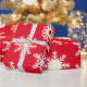 A range of patterned snowflakes on a red background are the basis for this Christmas or Holiday gift wrapping paper.