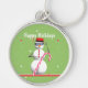 Christmas keychain with my design of a snowman wearing sunglasses, holding a candy cane and tipping his hat while wishing everyone "Happy Holidays".
