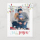 This design features Christmas holiday cute string lights, fun merry Christmas simple family photo, classic colourful festive red typography,1 one picture stylish trendy, modern elegant simple trendy, minimalist tree decoration trimming, modern calligraphy script font, whimsical Christmas string of lights, artwork by laura Lacina, a fun Christmas holiday tis the season photo cards