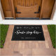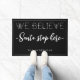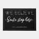 "We Believe" "Santa, Stop Here" personalized doormat in black.