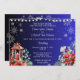 Elegant wedding invitation - just in time for Christmas! Simple, yet elegant invite with blue gradient and snowflake background on the front and back. One side holds a beautiful holiday wreath, while the other holds all of your particulars framed with a holiday lantern, poinsettias, and evergreens.