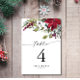 The word “Table” is styled in a graceful script font, paired with bold numbering for easy visibility. Delicate motifs such as poinsettias, give each card a timeless holiday touch.
