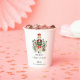 Create a personalized Christmas paper cups featuring a charming toy nutcracker. This festive paper cup allows you to add a personal touch with customizable fields for your family name and a warm greeting. Imagine the delight of your guests as they enjoy their cup of hot chocolate adorned with your unique message and the whimsical image of a nutcracker. These custom paper cups will not only elevate your holiday table setting but also create lasting memories for years to come. Easily customize by clicking the "Personalize" button.