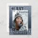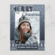 An ugly sweater photo template postcard with Merry Christmas and a Happy New Year wishes. The design shows a navy blue pattern with sparkling snowflake lights. Great for both personal use as well as a corporate purpose to say Thank You to customers.