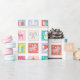 This holidays design features a colourful Christmas postage stamp pattern with Christmas trees, reindeer, candy canes, snowmen, decorations, gifts, holly, snowflakes and more. Modern and bright, perfect for the holidays.