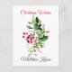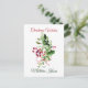 Christmas Holiday Postcard. This design features a watercolor illustration of Mistletoe, Holly leaves and red berries. You can adjust text according to your requirements.