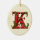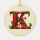 Beautiful monogrammed Christmas ornaments that have a red letter K adorned with holly against a tan antique looking background. The customizable background image can be removed if you prefer a white background, or you can change it to the colour to your choice with the customize button. Customizable text on the back side for message of your choice.