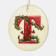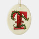Beautiful monogrammed Christmas ornaments that have a red letter T adorned with holly against a tan antique looking background. The customizable background image can be removed if you prefer a white background, or you can change it to the colour to your choice with the customize button. Customizable text on the back side for message of your choice.