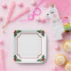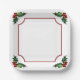 A beautiful Christmas paper plate featuring a red and green holly accents. Great for your holiday party.