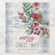 A rustic style Christmas holly branch in lush reds and greens on a light wood background, for holiday wine labels for your party or for gifting.