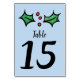 A Christmas holly wedding table number by Helen McCartney Designs.