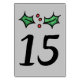 A Christmas holly wedding table number by Helen McCartney Designs.