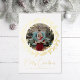 Real foil holiday wreath, over circular photo. Merry Christmas in foil letters with your name and year. Choose your foil colour: gold, silver or rose gold, and backer colour. Add more photos to the back or write a message.