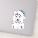 Contour sticker with a whimsical and cute watercolor painting of a husky dog wearing a blue Santa hat.