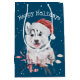 Christmas Husky On Blue Medium Gift Bag