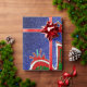 This image is a set of ice skates in Christmas colours of red, green and white. A blue and white backround with glitter was added to this design. A red and green border with glitter was also added. This gift wrap is available in assorted styles, and sizes.