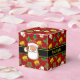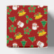 Set of christmas icons. Santas head, christmas tree, bells, christmas holly, and poinsettia. Custom background colour. Seamless pattern. Custom text.