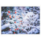Sparrows and a pigeon by the bird feeder in wintertime. Snow-covered Christmas trees decorated with red, blue balls around. Christmas idyll. One-of-a-kind, chic table cloth. Do not forget to choose another size of the cloth. Use the Customize button to adjust the image, if needed (fit/fill button). You can also transfer this design to a large variety of other products, just choose a product from a line hereinunder. Have fun and be happy!