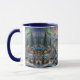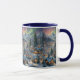 This mug features a snow-covered village with brightly lit houses in the mountains, surrounded by tall fir trees, polar lights shining in the sky. Wonderful gift idea! Custom text.
