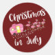 Christmas In July Flamingo Pink Funny Camping Classic Round Sticker