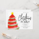 This Christmas in July Party Invitation is decorated with a red watercolor watermelon Christmas tree.