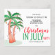 Invite family and friends to your Christmas in July celebration with this fun invitation featuring hand-drawn palm trees decorated with lights and baubles.
