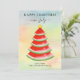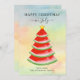 These fun Christmas in July cards are decorated with a red watercolor watermelon Christmas tree on a colourful background.