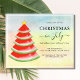 This Christmas in July Party Invitation Flyer is decorated with a red watercolor watermelon Christmas tree.