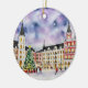 This customizable Christmas ornament feature a watercolor portrait of Madrid at Christmas time.