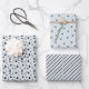 Add Parisian flair to all your holiday gifts with our chic Paris patterned wrapping paper in ethereal pastel sky blue and classic black. Design features tiny snowflakes, Christmas trees, wrapped gifts, birds, croissants, macarons, roses, coffee cups, and of course, the Eiffel tower! Includes two coordinating gift wrap patterns in snowflakes and chic diagonal stripes.