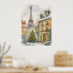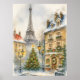Christmas in Paris Watercolor Eiffel Tower Scene Poster